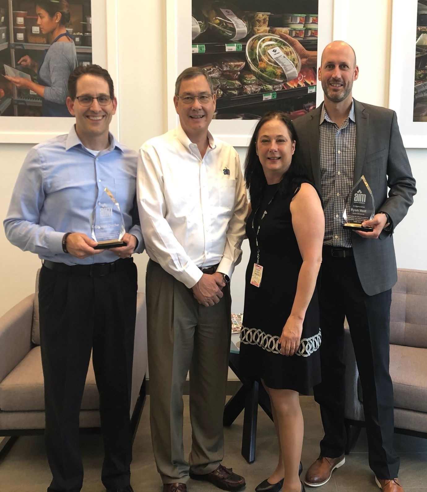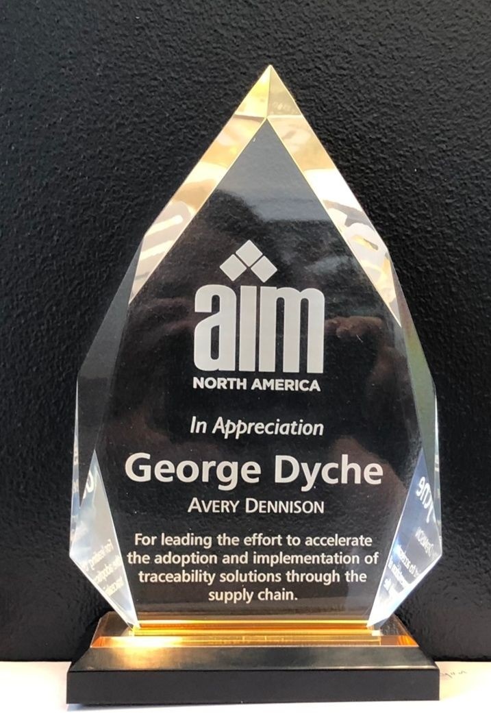 Chuck Evanhoe, Chairman, Board of Directors, AIM, Inc., Chair of ADC1, US Technical Advisors Group for ISO/IEC JTC 1/SC 31 & SC41, CEO Aware Innovations and Evanhoe & Associates presented Ryan Yost, GM Avery Dennison Printers Systems and George Dyche Sr Direction Innovation, Avery Dennison Printers System an AIM Global Appreciation award. Award winners are selected by AIM Global Board of Directors for their cross-industry leadership in raising the awareness and adoption of ISO AIDC standards. The adoption of technical standards lowers the cost and risk of implementations while accelerating adoption rate, thus benefiting the community at large. On June 28, 2019, the AIM Global Board recognized Ryan Yost and George Dyche in appreciation for their leadership in accelerating the adoption and implementation of traceability solutions through standards adoption in the supply chain. AIM Global especially recognizes them for their support and commitment to the education of the food supply chain community of the importance of the adoption of traceability standards.